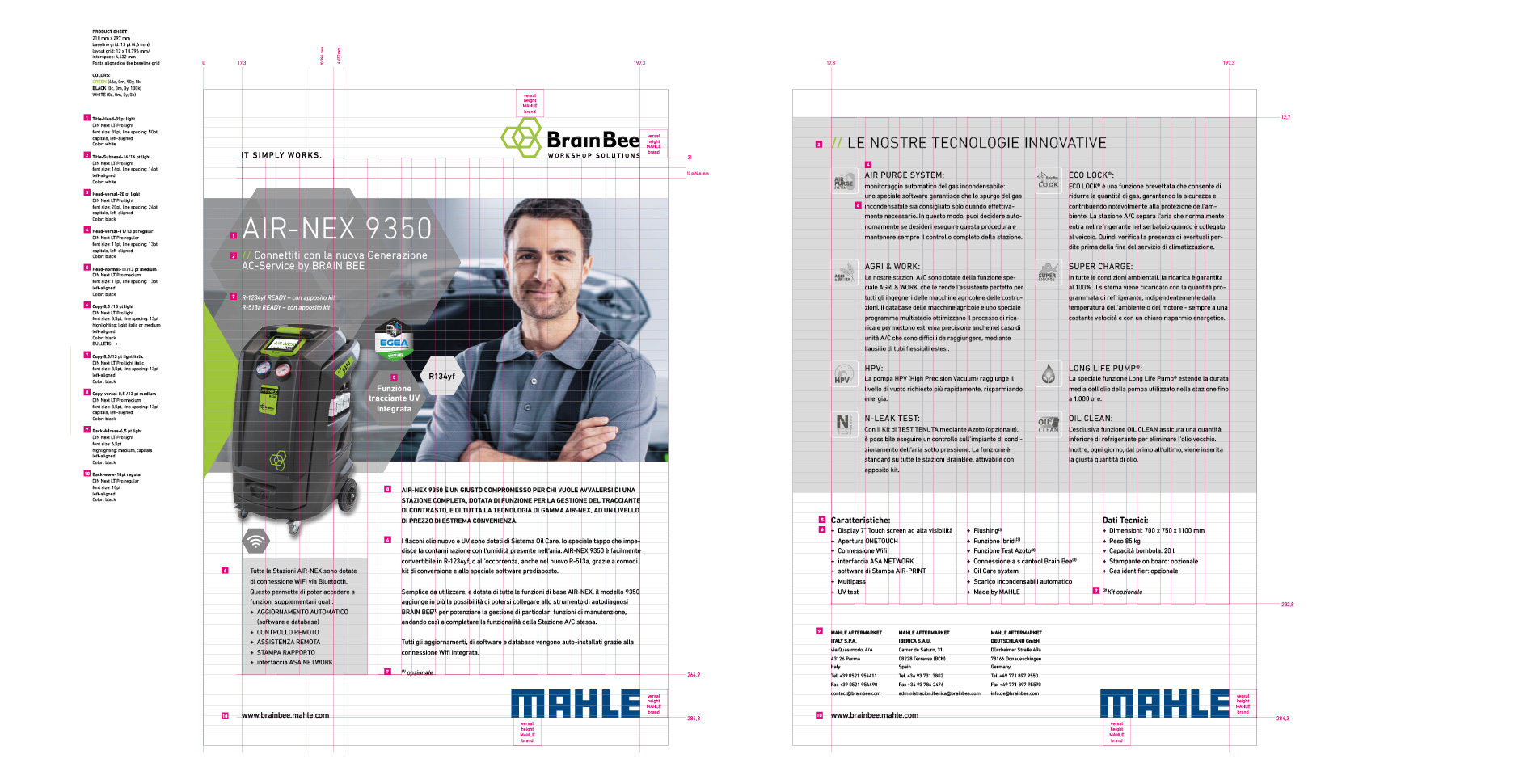 Durch die mehrheitliche Übernahme von BRAIN BEE baut MAHLE seine Kompetenz in der Fahrzeugdiagnose und im Emissions- sowie Klimaservice- und Fluidmanagement aus. Weitreichende Corporate Design-Anpassungen und die entsprechenden Template-Erstellungen erfolgten, unter anderem, sukzessive durch uns.